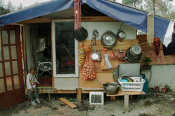 The Roma community live in a reality out of time where with no services they have to devote themselves to agriculture and breeding with the clear risk to eat something poisoned by the toxic substances leaked in and around their camp, turned as all Roma camps in illegal dump where children's health is constantly at risk. This former industrial area being totally isolated doesn't allow medical assistance for the elderly or the sick, and doesn't allow a school service for the kids who are left to fend for themselves.